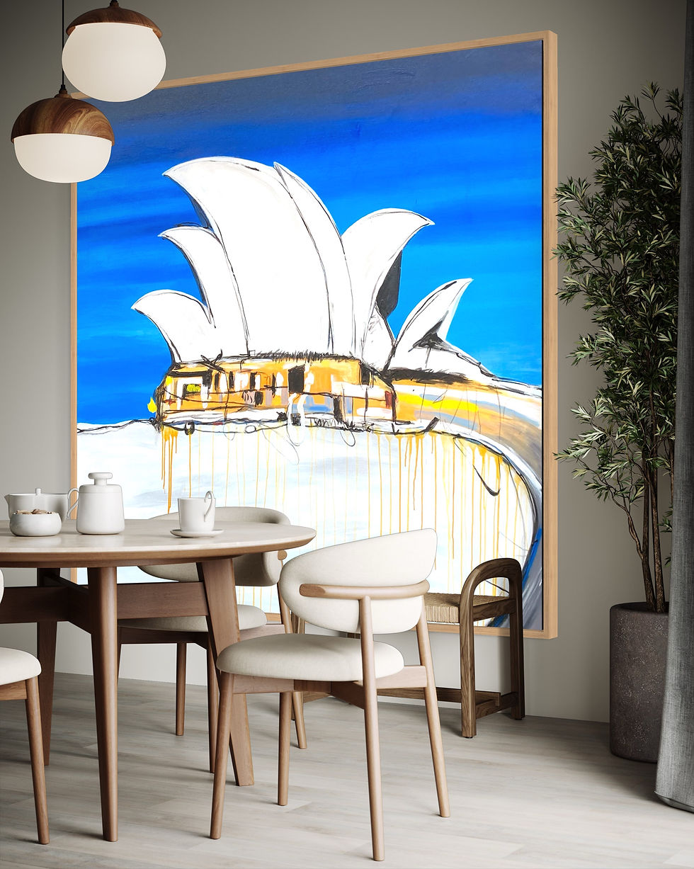 Returning to Sydney in 2019, Bowden reignited his practice with renewed passion and a deeper artistic vision. His current body of work fuses Pop Abstraction with Neo-Expressionism, exploring themes rooted in travel, culture, and human connection. Layered palettes collide with charcoal sketches, expressive line work, and oil stick interventions—resulting in works that are both wildly intense and visually harmonious.